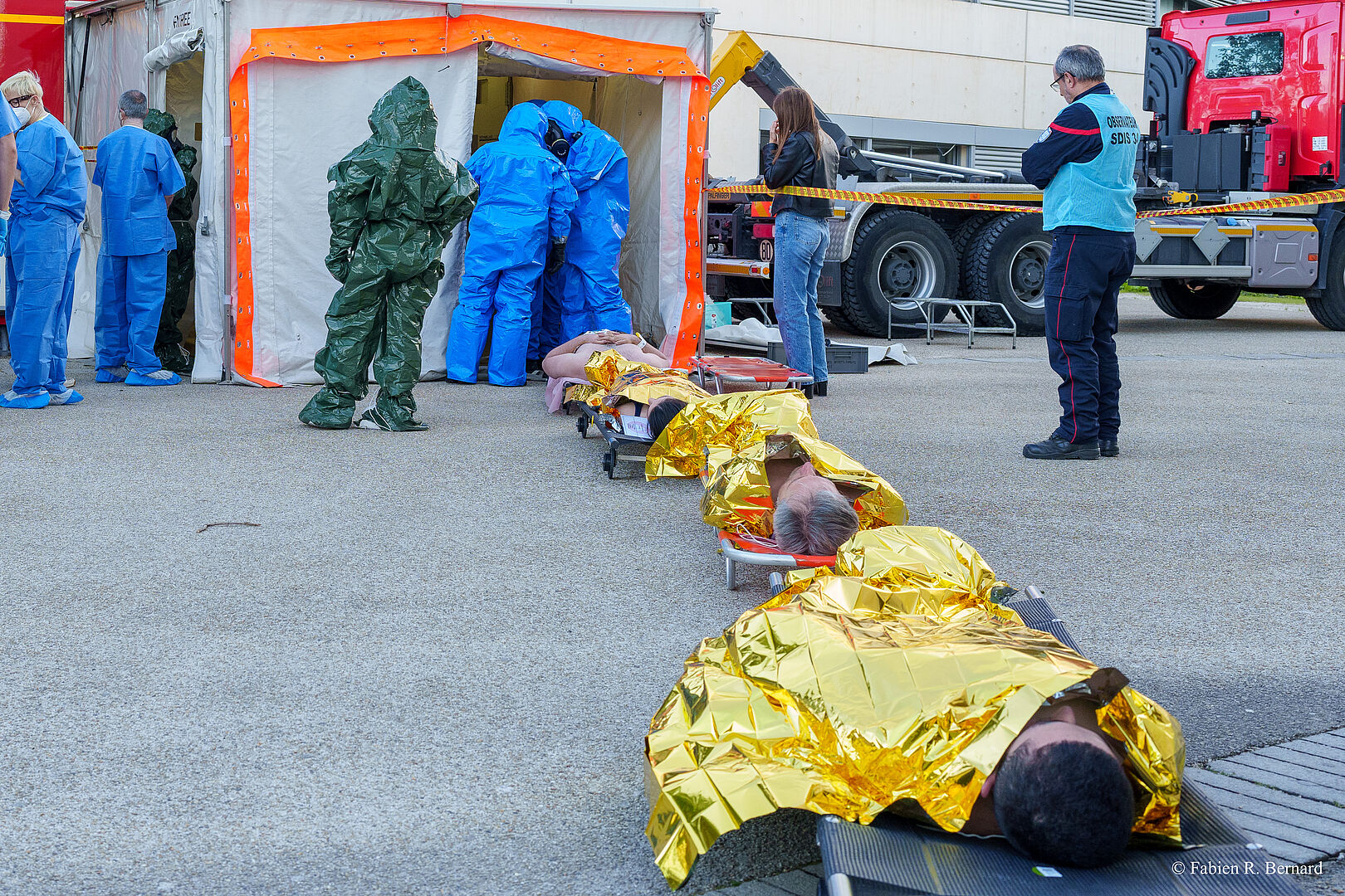L'objectif principal de cet exercice était d'assurer l'intervention des secours primo-intervenants lors d'un évènement avec prise en charge de nombreuses victimes dans un contexte d'exposition à un toxique chimique.
