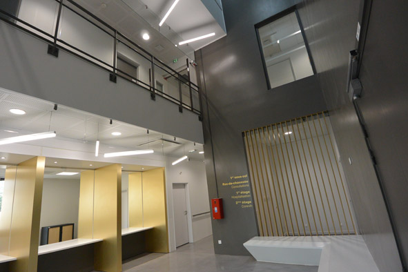 Le secteur Hall – Admissions est localisé à l’entrée du bâtiment de plain-pied avec l’accès extérieur, il dessert tous les autres secteurs du bâtiment.